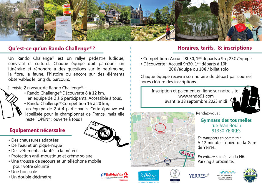 Rando Challenge® le dimanche 21 septembre 2025 à Yerres depuis le gymnase des Tournelles.