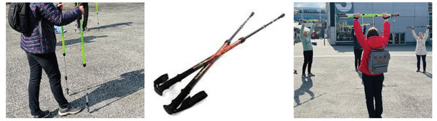 Ces bâtons favorisent le redressement du buste (donc une meilleure oxygénation), limitent les chocs articulaires, soulagent les membres inférieurs, stimulent l'équilibre, renforcent la coordination motrice, permettent un travail harmonieux et équilibré des muscles (haut du corps et bas du corps).